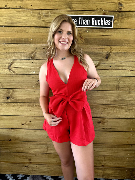 Red Halter Bow Romper