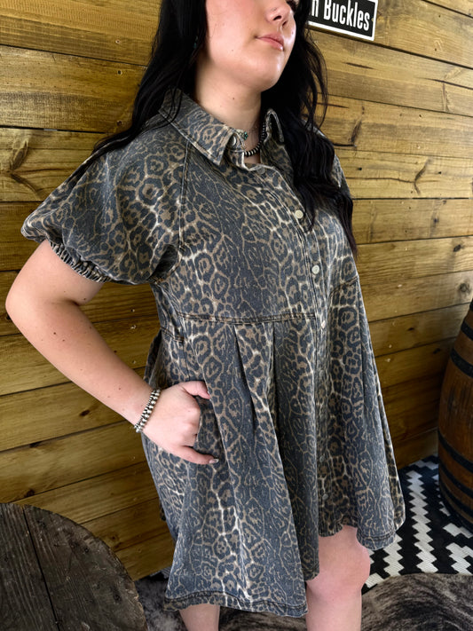 SaleDenim Cheetah Dress